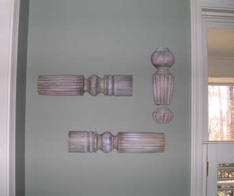 ![]() These Old Table legs were cut in half and painted and then just hung on the wall as is.