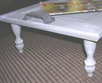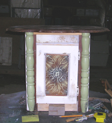 I used another old table leg, cut in half, to embelish this cabinet