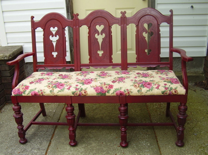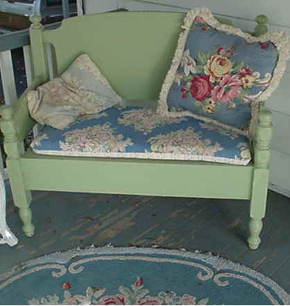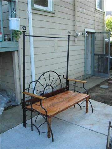 That bench was made from an old queen sized waterbed frame. It's VERY heavy and I couldn't have mangaged it without the help of my Husband. He did all the heavy work while I supervised! Kathy
