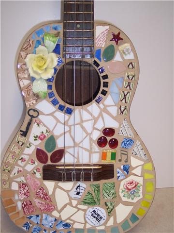 What a beautiful violin, Thanks Pam. Lila R sent in her Mosaic Mandolin: Thought you may like my mandolin. I do mosaics and shard art.