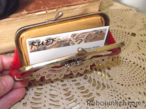 For this project, all I did was to screw some old drawer and door hardware onto an old piece of wood. Makes a great business card holder. Carriage Wheel Cameo by Margo