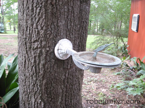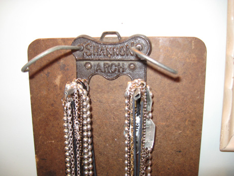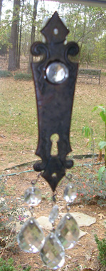 This is an old outdoor light fixture. I turned it upside-down and mounted it to a tree in my "junk yard". It could be a bird feeder, hold a plant, or as I'm using it here, to hold this sun dial (in the shade). Duhh! sun dials don't work in the shade, Margo!!! It could also be used indoors, mounted to a stud and used for anything from a catch all just inside the door, to a small side table ledge, next to a bed. ![]() Escutcheon Necklace-by Margo ![]() First fold the cord in half and add a bead, any bead will do, it will not be visible. You could even just tie a knot. ![]() Then thread the cord through the lower hole on the escutcheon, the bead will keep the cord from pulling through. Ignore the key and jump rings you see here, you will add those later. ![]() Then bring each side of the cord around the front, and then to the back behind the escutcheon ![]() Bring the cord ends together again and thread through the top hole in the escutcheon plate to the front. As seen here from the back side. ![]() using the jump rings, attach a key or any other item you want to dangle from below. Add a clasp of some sort and you are done. I just love this easy easy and unique necklace. It's great with jeans, and I love my jeans. ![]() Hope you enjoy this easy project. I'm going to try to offer more projects in the future. If you found these instructions easy to follow, that is just a sample of what my tutorials are like. Most tutorials are a bit more detailed, with lots of pictures, and techniques. ![]() For this project, I simply took an old door handle with character. Screwed it to an old piece of trim board, and hung it on the wall.