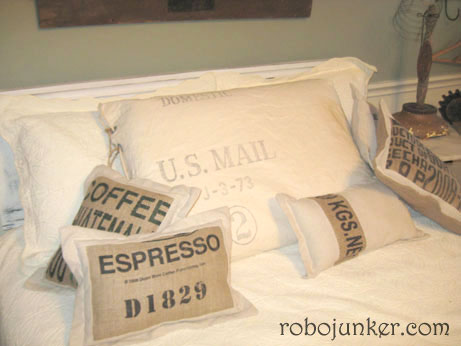 What qualifies as a quick project? First, this is where the Quick projects of the week go when they are no longer featured on the cover page. Second, I try to make them very easy with minimal use of tools. Hot Glue or Spray Paint may sometimes be required. Mail Bag Pillow/cushion by Margo